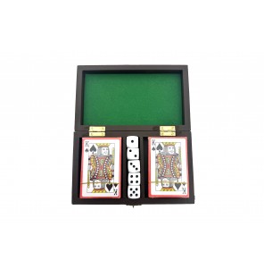 COFFRET BOIS 2 JEUX DE CARTES ET 5 DÉS