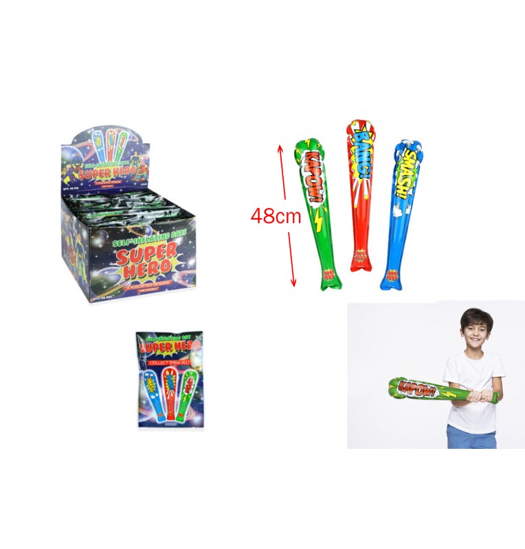 Présentoir comprenant 48 bâtons gonflables Super Héros assortis.