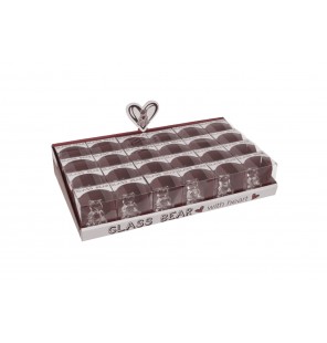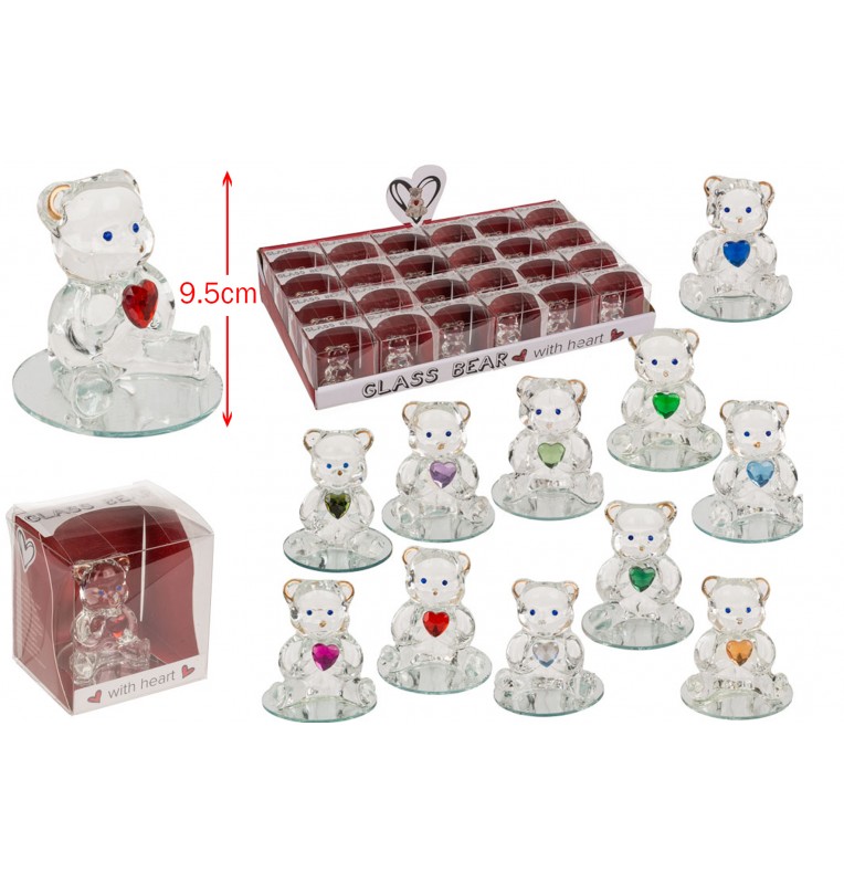 Présentoir de 24 ours en verre avec cœur, lot de 12 modèles assortis. Figurines décoratives élégantes et brillantes, idéales pour cadeaux, vitrines et occasions romantiques. Finition soignée, symbole d’amour et de tendresse.