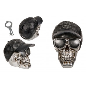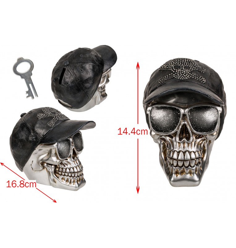 Tirelire tête de mort au design original et détaillé. Objet décoratif et fonctionnel, idéale pour économiser avec style. Parfaite pour décoration gothique, rock ou Halloween, cadeau insolite pour collectionneurs et amateurs d’objets atypiques.