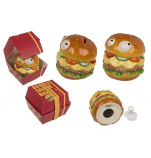 Boîte cadeau tirelire en forme de burger qui se ferme à clé, originale et amusante. Idéale pour offrir, elle permet d’économiser tout en décorant la chambre. Cadeau ludique qui plaît aux enfants comme aux adultes gourmands de fun.