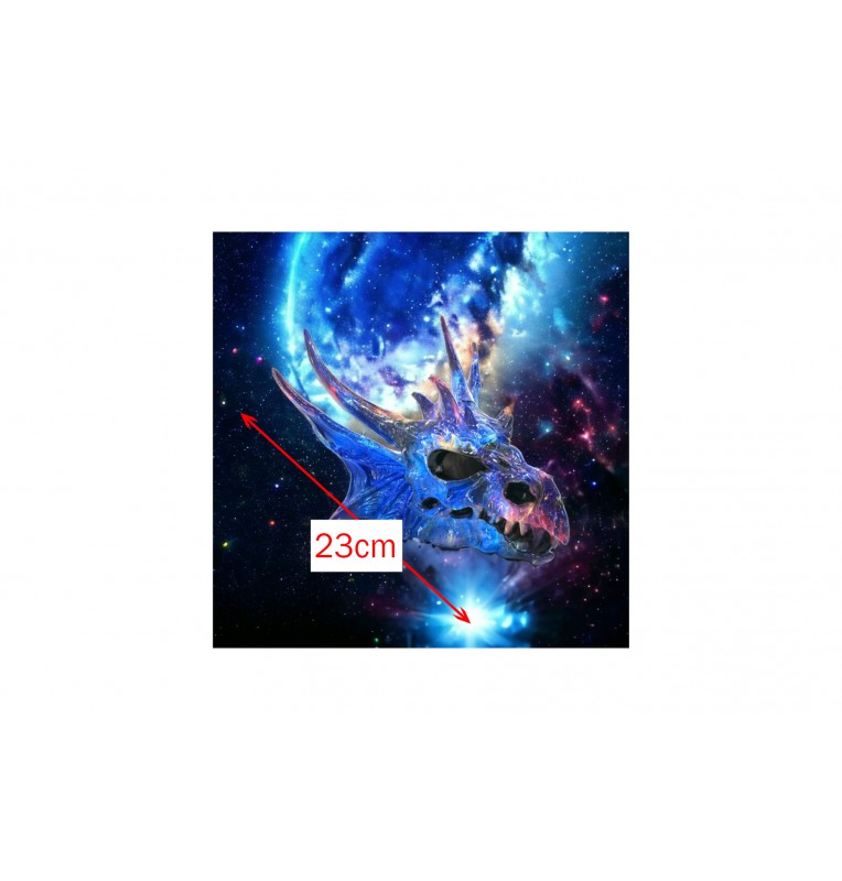 Plongez dans le cosmos avec ce crâne de dragon galaxie. Une pièce de décoration unique aux reflets nébuleux pour une ambiance fantastique.