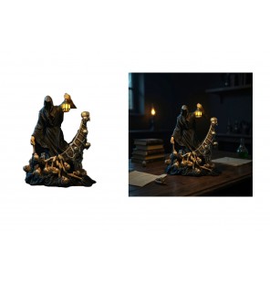 STATUE HIBOU RESINE AVEC CHAUDRON