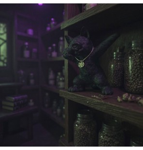 Figurine originale de chat noir dabber. Un mélange unique entre tendance "Dab" et univers ésotérique. Le cadeau parfait pour un amateur de chats et de style alternatif.