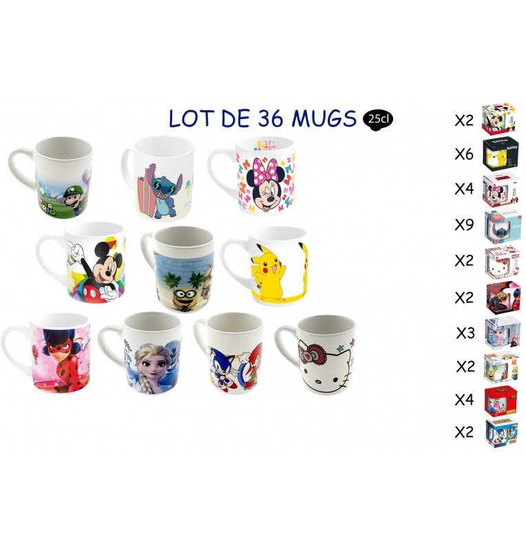 ASSORTIMENT 36 MUGS LICENCES 10 MODELES
