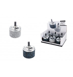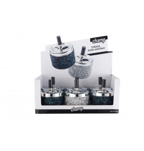 Présentoir de 6 cendriers push paillettes assortis.