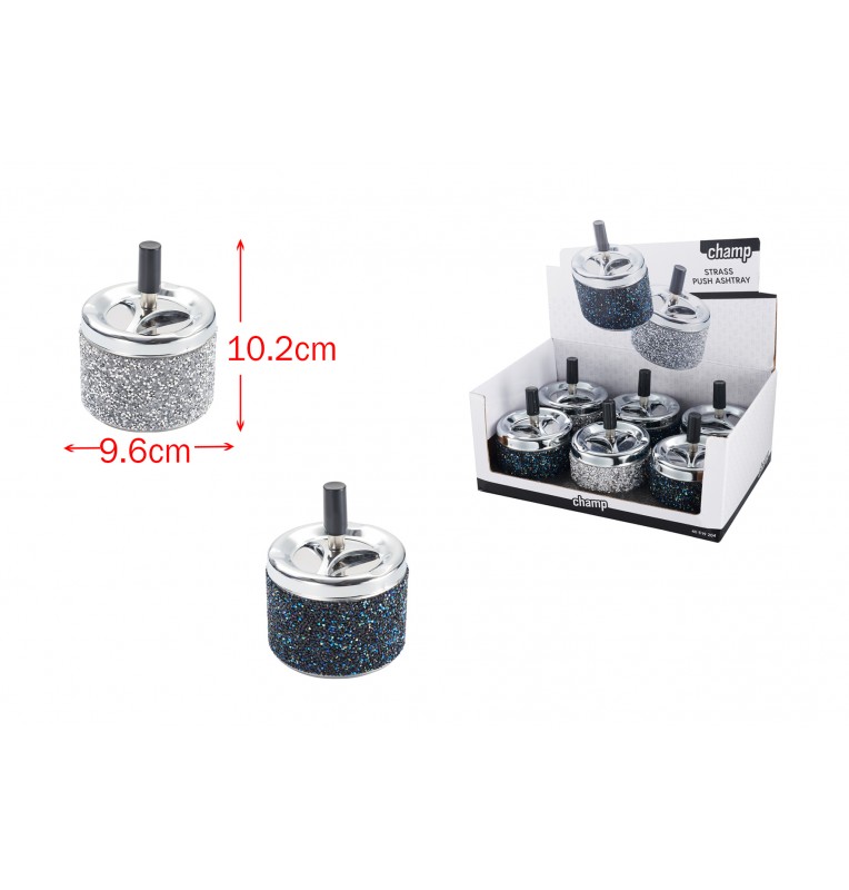 Cendrier push paillettes au design brillant et original. Pratique et élégant, parfait pour ajouter une touche scintillante à votre intérieur.