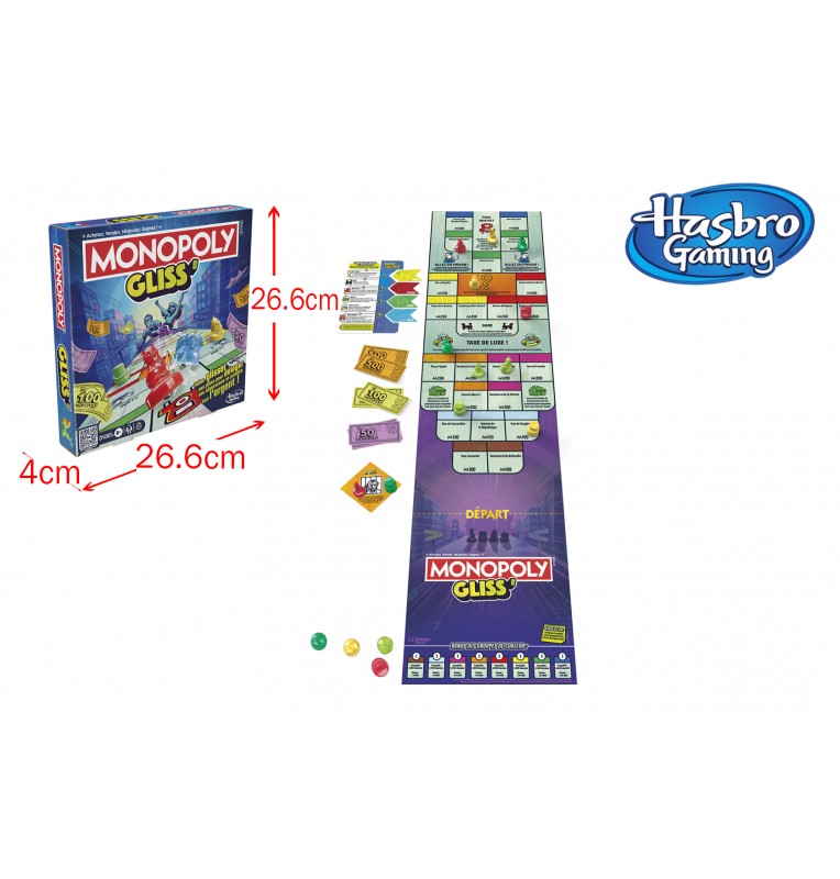 Monopoly Gliss’ : la nouvelle édition du Monopoly qui combine stratégie et vitesse. Achetez, vendez et glissez vos pions pour remporter la victoire !