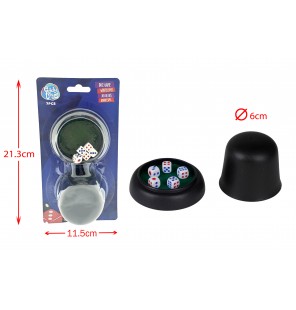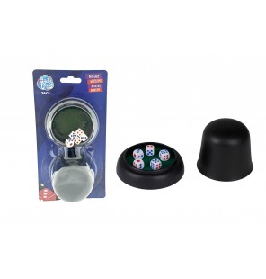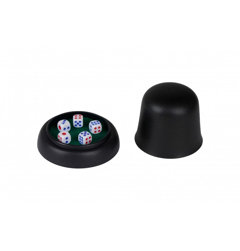 Jeu de dés avec gobelet et 5 dés, parfait pour soirées entre amis ou en famille. Simple, amusant et rapide à jouer, idéal pour tous les âges et occasions festives.