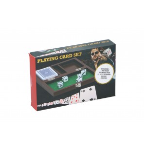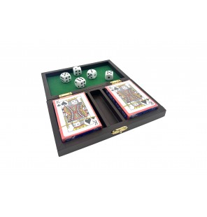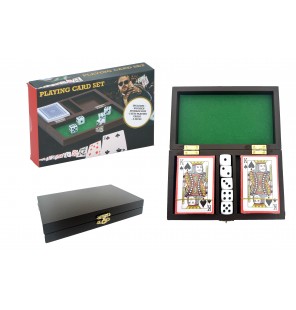 COFFRET BOIS 2 JEUX DE CARTES ET 5 DÉS