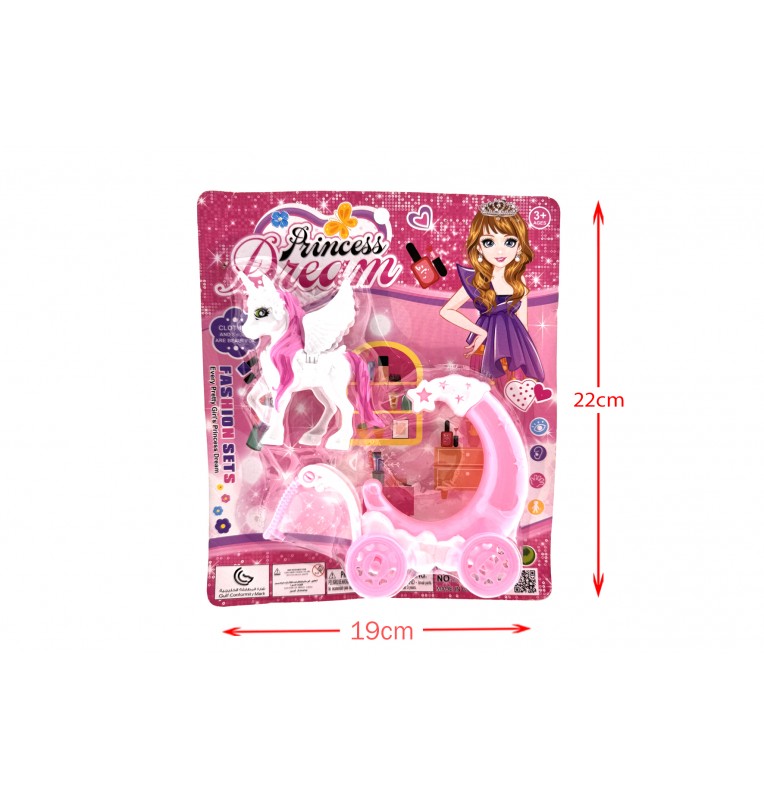 Jouet licorne rose avec carrosse, idéal pour les petites fans de princesses. Un cadeau magique qui stimule l'imagination.