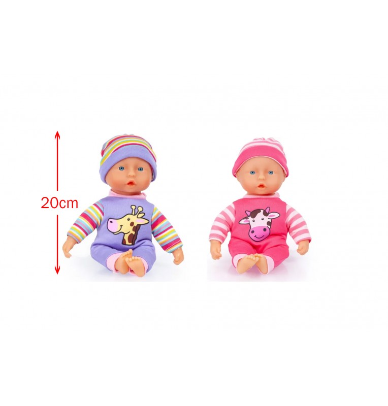 Habillés de pyjamas colorés avec motifs girafe et vache, ils sont parfaits pour les câlins et l'éveil.
