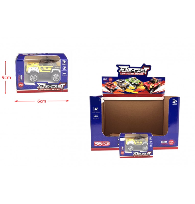 Emballage: Présentoir comprenant 36 4X4 métal assortis.