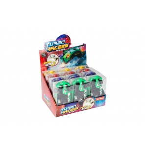 Présentoir comprenant 12 turbo voitures frictions assortis.