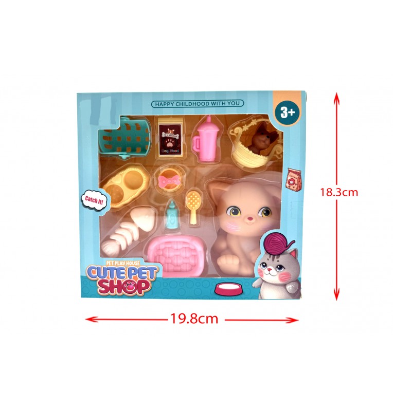 Découvrez le jeu d'animalerie complet que votre enfant va adorer ! Un grand chat en plastique avec tous les accessoires : panier, nourriture, et kit de soin. Pour des heures de jeu créatif.