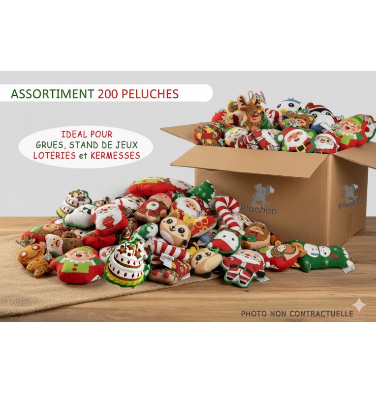 MIX 200 PELUCHES DE NOEL PLUCHON - Spécial grues TAILLE MELANGE