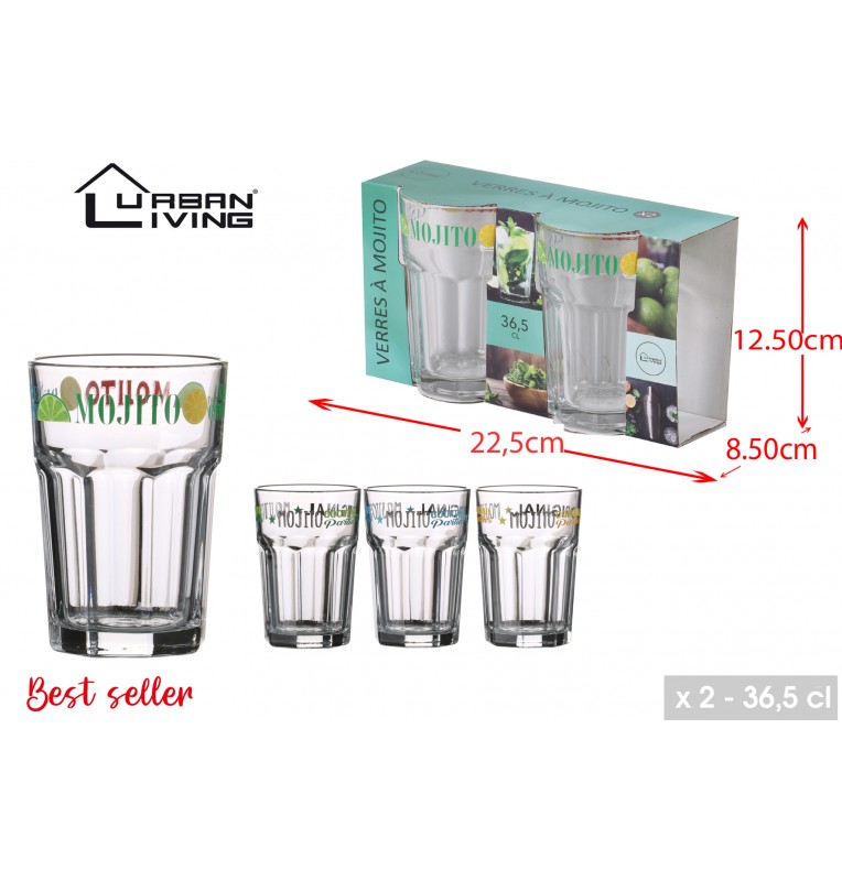 Apportez une touche estivale à vos soirées avec notre set de 2 verres à mojito de 36,5 cl ! Conçus pour mettre en valeur vos cocktails préférés, ces verres sont parfaits pour servir des mojitos rafraîchissants, mais aussi d'autres boissons estivales comme des smoothies ou des cocktails de fruits. Leur design élégant et transparent permet de profiter de la belle couleur de vos créations, tandis que la grande capacité de 36,5 cl vous permet d'y ajouter une généreuse portion de glace et d'ingrédients. Fabriqués en verre de haute qualité, ces verres sont durables et faciles à nettoyer, idéaux pour les barbecues, les fêtes ou les soirées entre amis.