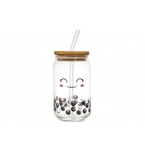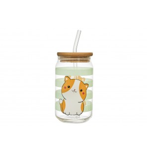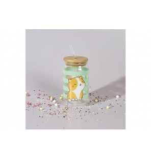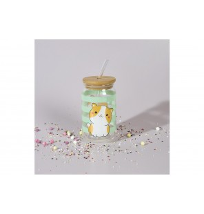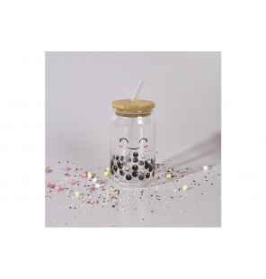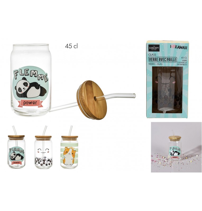 VERRE PAILLE COUVERCLE BAMBOU 45CL KAWAII 3 ASSORTIS