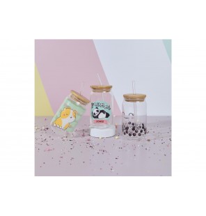 Optez pour une hydratation pratique avec sa contenance de 45 cl, ce verre combine un design kawaii irrésistible (motifs panda, Bubble Tea ou chat) avec une paille en verre et un couvercle en bambou. Un indispensable pour allier plaisir, praticité et style !