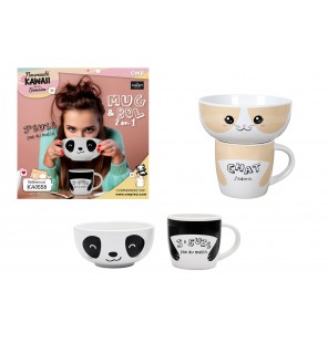 SET MUG ET BOL CERAMIQUE KAWAII 2 ASSORTIS
