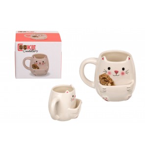 BOITE CADEAU MUG CHAT SUPPORT BISCUIT
