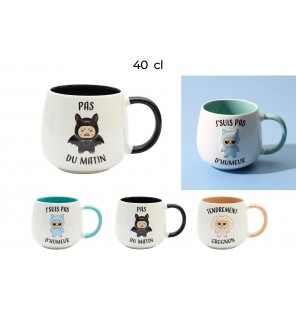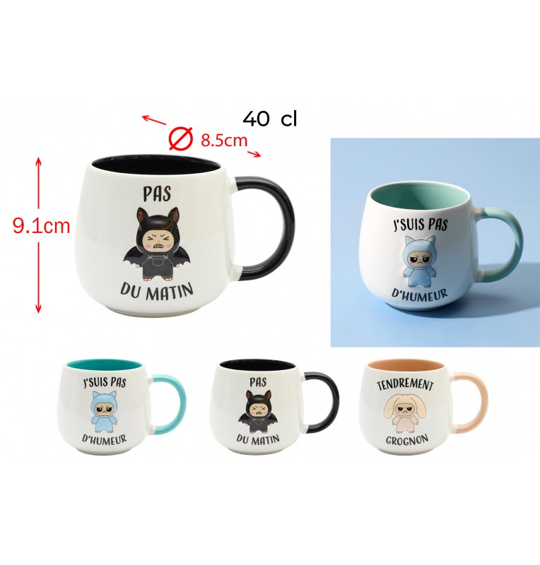 Ses messages décalés – “Pas du matin”, “J’suis pas d’humeur”, “Tendrement grognon” – reflètent à merveille votre humeur avant le premier café !Confortable en main et coloré à l’intérieur, il est parfait pour bien commencer la journée… ou râler avec style.