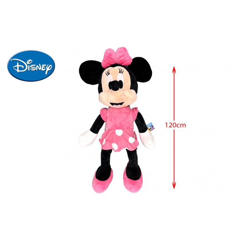 Peluche géante Minnie Mouse (120 cm) sous licence Disney. Avec sa robe à pois roses, elle est la compagne de câlins XXL idéale. Le cadeau de rêve pour une surprise mémorable.