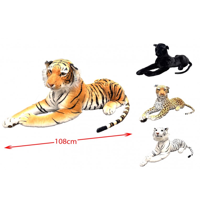 Peluche tigre 108cm réaliste, tigre blanc ,léopard et jaguar : Offrez l'expérience de la faune sauvage. Des détails soignés et une taille impressionnante pour captiver vos clients.