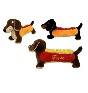 Craquez pour nos peluches Teckel Hot-Dog et Frites ! Des compagnons doux et originaux au design gourmand. Parfait pour un cadeau insolite et rigolo.