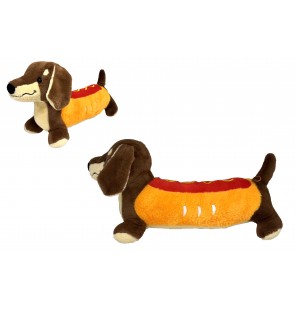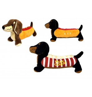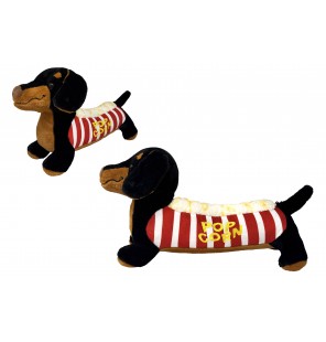 Collection Teckel Snack 60 cm : découvrez les modèles Hot-dog et Pop-corn. Des peluches de grande taille, parfaites pour décorer ou pour offrir.