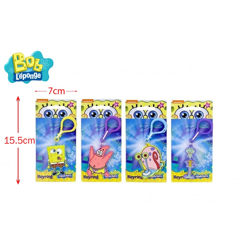 Porte-clés Bob l’éponge avec Bob, Patrick, Gary et Carlo, design coloré et durable, parfaits pour personnaliser vos clés ou sacs au quotidien.