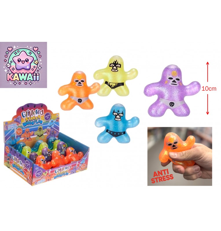 Collectionnez les 4 designs du jouet anti-stress "Glittered Stress Wrestler" Recouvert de paillettes. Il peut être malaxé, pressé et jeté au sol, un allié amusant contre le stress et l'anxiété..