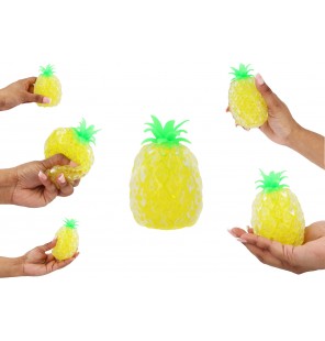 Dynamisez votre offre avec ce Squishy ananas sensoriel, un incontournable des produits à forte rotation. Sa forme tropicale attrayante et sa texture souple procurent une expérience tactile unique : en le pressant, les billes internes se déplacent et offrent un effet visuel ludique et relaxant.