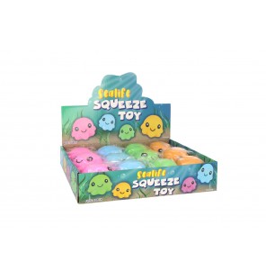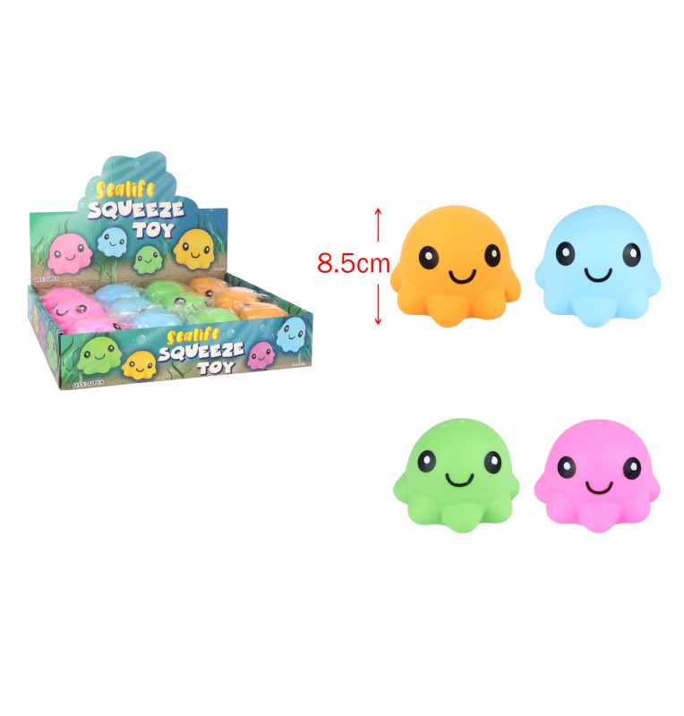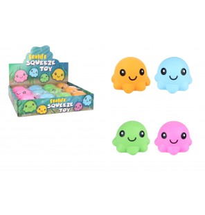 Présentoir comprenant 12 Squishy pieuvres assortis.