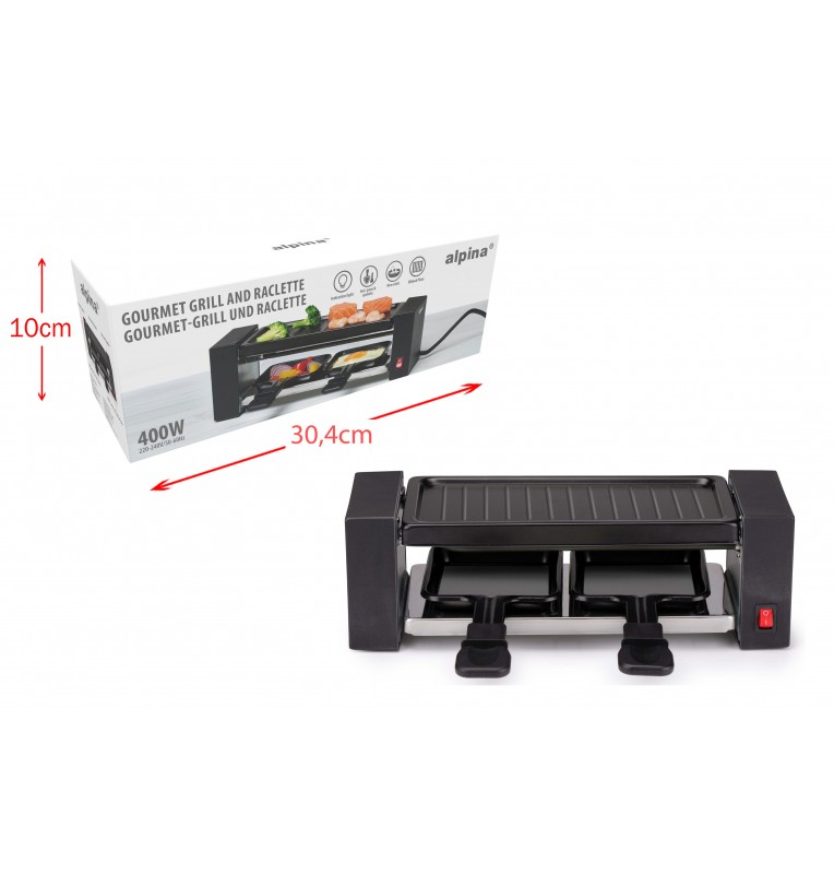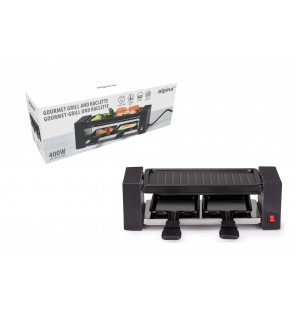 Raclette grill 2 personnes 400 W, appareil compact et convivial pour des repas gourmands. Chauffe rapide, facile à utiliser et à nettoyer, idéal pour petites tablées et soirées raclette à la maison.